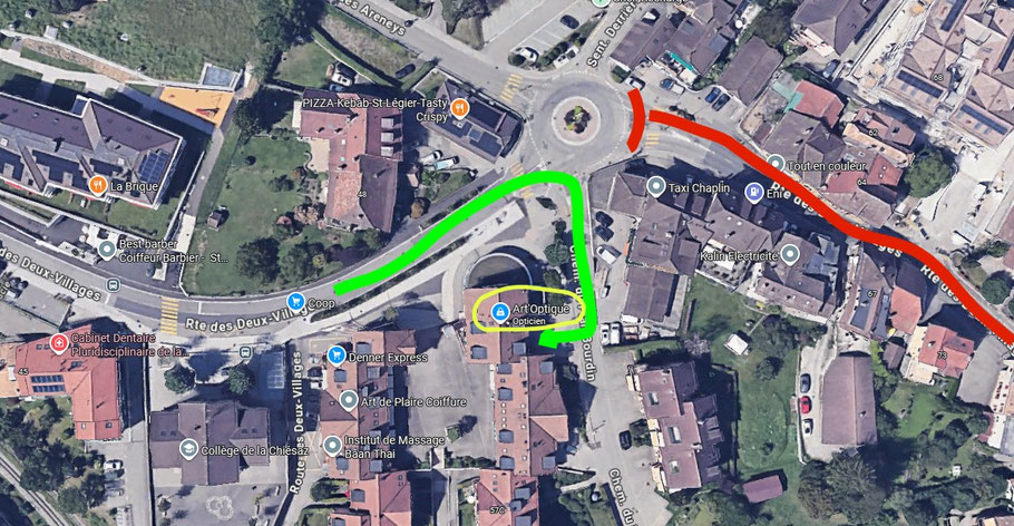 Actuellement, la route reliant St-Légier à Blonay est fermée pour cause de travaux. Une déviation est en place pour les gens venant de Blonay, le plus simple est de passer par le chemin des boulingrins qui longe l'autoroute. Dès la fin de l'année, la route sera rouverte dans le sens de la montée en direction de Blonay. L'accès depuis St-Légier et depuis la sortie d'autoroute reste inchangé.